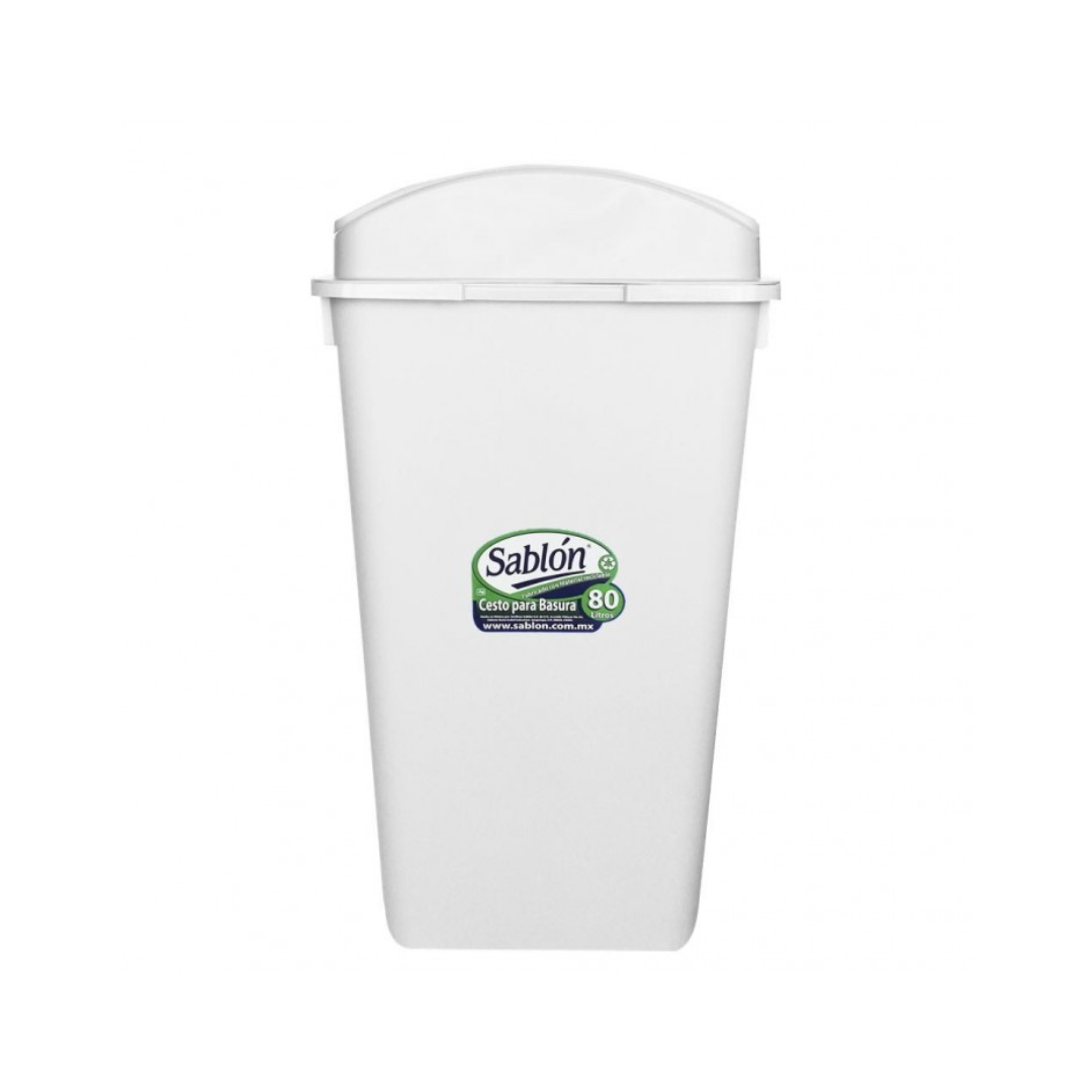 El Bote de Basura Sablón de 80 Litros Blanco con tapa elíptica, elaborado en material duradero, es resistente y fácil de limpiar. Ideal para uso diario en entornos diversos.